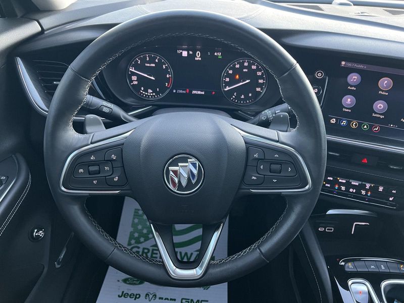EMISSIONS, FEDERAL REQUIREMENTS, 2.0L TURBO, 4-CYLINDER, SIDI, TRANSMISSION, 9-SPEED AUTOMATIC, AXLE, 3.47 FINAL DRIVE RATIO, WHEELS, 20" (50.8 CM) DIAMOND CUT ALUMINUM WITH CARBON FLASH METALLIC FINISH, TIRES, P245/45R20 ALL-SEASON, EBONY TWILIGHT METALLIC, SEATS, FRONT BUCKET, EBONY SEATS, PERFORATED LEATHER-APPOINTED SEAT TRIM, AUDIO SYSTEM, 10.2" DIAGONAL BUICK INFOTAINMENT SYSTEM WITH NAVIGATION, TECHNOLOGY PACKAGE I, MOONROOF, POWER, PANORAMIC, TILT-SLIDING, AUDIO SYSTEM FEATURE, BOSE PREMIUM 9-SPEAKER SYSTEM, AUDIO SYSTEM FEATURE, MEMORY CARD RECEPTACLE, HD RADIO, UNIVERSAL HOME REMOTE, HEAD-UP DISPLAY, HD SURROUND VISION, FRONT AND REAR PARK ASSIST