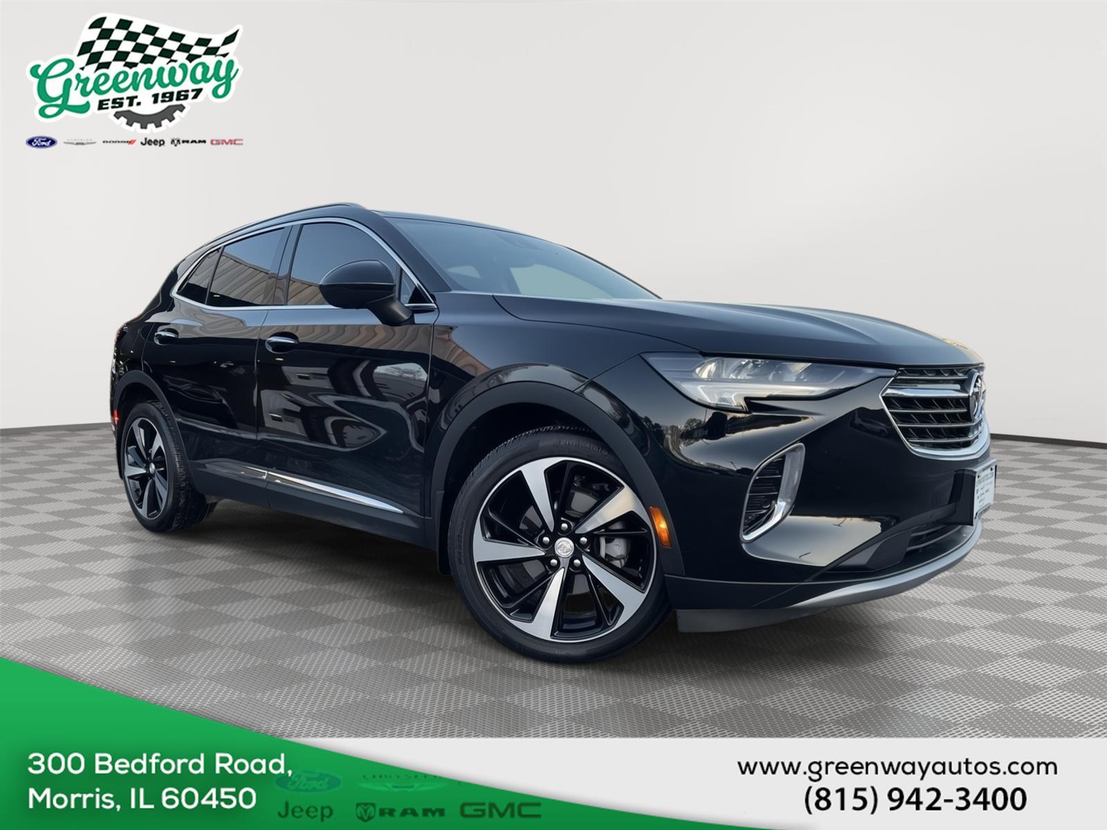 The 2021 Buick Envision Essence is a luxury compact SUV that offers a perfect blend of style, comfort, and performance. With its sleek design, advanced technology features, and spacious interior, this vehicle is a great choice for anyone looking for a reliable and feature-packed ride. At Greenway Chrysler Dodge Jeep Ram in Morris, our team is excited to introduce you to the Envision Essence, which boasts a range of key benefits, including a powerful 2.0L turbo engine, advanced safety features like forward collision alert and lane departure warning, and a premium infotainment system with navigation and Apple CarPlay compatibility. Whether you're cruising around Morris or exploring the surrounding areas, the 2021 Buick Envision Essence is designed to provide a smooth and enjoyable driving experience. Its comfortable seating, ample cargo space, and intuitive controls make it an ideal vehicle for daily driving, road trips, or family outings. With its impressive fuel economy and low maintenance costs, the Envision Essence is also a practical choice for those who want a luxurious ride without breaking the bank. At Greenway Chrysler Dodge Jeep Ram, our knowledgeable staff will be happy to answer any questions you may have and help you find the perfect trim level and features to suit your lifestyle and preferences. If you're interested in experiencing the 2021 Buick Envision Essence for yourself, we invite you to schedule a test drive at Greenway Chrysler Dodge Jeep Ram in Morris. Our friendly and experienced team will be delighted to show you the ropes and help you explore all the features and capabilities of this exceptional vehicle. Contact us today to learn more and take the first step towards owning your dream car. With competitive pricing, flexible financing options, and a commitment to customer satisfaction, Greenway Chrysler Dodge Jeep Ram is the perfect destination for all your automotive needs in Morris and beyond.