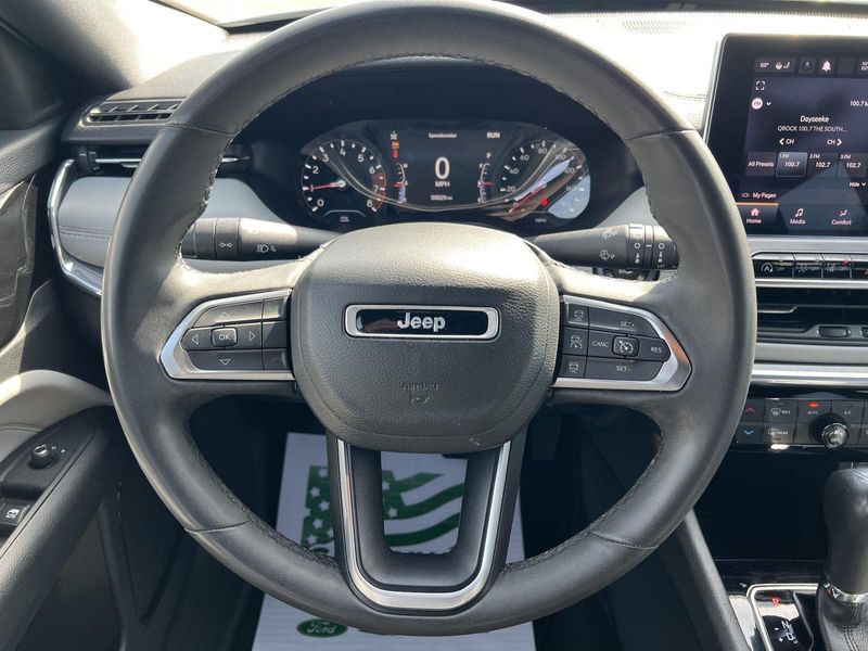 This 2023 Jeep Compass Limited , has a Bright White Clearcoat exterior and an Black interior color. 50,031 miles. Stock Number FE09536. You can connect with us by calling 815-942-3400. One Owner! No Accidents! Ready to make a statement on the road? This 2023 Jeep Compass Limited is priced to move and waiting for you. OTHER NOTABLE FEATURES AND OPTIONS YOU SHOULD KNOW ABOUT: Quick Order Package 29G Comfort The steering wheel rim is heated. Convenience The keyfob has the ability to remotely start the vehicle. The keyfob has the ability to remotely start the vehicle's engine. Safety and Security A blind spot detection system will alert the driver when another vehicle is within the warning zone. Technology and Telematics Without the need for a manufacturer specific app to be installed on the smart device, the vehicle infotainment system can access and control functions of a smart device physically plugged-into the vehicle. Apple CarPlay/Android Auto smart device wireless mirroring Wireless Apple CarPlay/Android Auto smart device wireless mirroring Otherwise known as Bluetooth, this technology allows electronic devices to integrate with the vehicle systems without the need for a physical connection between them. This vehicle is priced to move. Drive home today in your new vehicle, with the Greenway experience. Our family run business prides ourselves on providing exceptional value and a hassle-free buying experience. To be sure you don't miss out, give us a call and schedule a test drive. We are located at 300 West Bedford Road Morris IL 60450 - (815) 942-3400. WE LOOK FORWARD TO SEEING YOU SOON! Despite our best efforts to ensure the accuracy of the information on this site, we cannot guarantee complete accuracy. The site and all information and materials provided are offered to users as is without any kind of warranty, either express or implied. All vehicles are subject to prior sale. The listed price does not include applicable taxes, title fees, and a documentation fee of $367.70. Greenway Ford CDJR serves Morris, Naperville, Joliet, Plainfield, Shorewood, Ottawa, Channahon, Minooka, Marseilles, Dwight and Oswego.