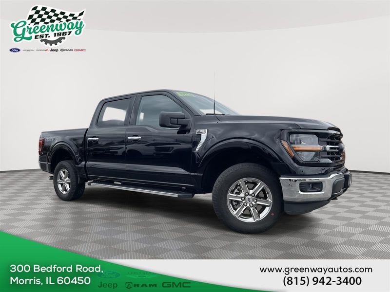 This 2025 Ford F-150 XLT , has a Agate Black Metallic exterior and an interior color. 20,480 miles. Stock Number FA04614. You can connect with us by calling 815-942-3400. One Owner! Ready to make a statement on the road? This 2025 Ford F-150 XLT is priced to move and waiting for you. OTHER NOTABLE FEATURES AND OPTIONS YOU SHOULD KNOW ABOUT: Equipment Group 301A Standard ($1,585 value) Safety and Security The vehicle constantly monitors the roadway in front of the vehicle and identifies and tracks pedestrians on an interior display. If the system determines a likely impact, it will automatically take preventative steps to avoid hitting the pedestrian. The vehicle is equipped with a camera that displays an image of the area behind the vehicle on an interior display. The vehicle is equipped with a camera that displays an image of the area behind the vehicle on an interior display. An active lane departure system alerts the driver of unintended movement of the vehicle out of a designated traffic lane and automatically maintains the vehicle's position within that lane. The vehicle is equipped with a system that senses, and then prepares, the vehicle and/or occupants, for an impending rear collision. Brake assist senses panic braking from the speed of the brake pedal's travel and applies all available power brake boost. Technology and Telematics SYNC 4 AppLink/Apple CarPlay/Android Auto smart device wireless mirroring Mobile devices can wirelessly connect to the internet through the vehicle's private mobile network. ENGINE: 3.5L V6 ECOBOOST, AGATE BLACK METALLIC This vehicle is priced to move. Drive home today in your new vehicle, with the Greenway experience. Our family run business prides ourselves on providing exceptional value and a hassle-free buying experience. To be sure you don't miss out, give us a call and schedule a test drive. We are located at 300 West Bedford Road Morris IL 60450 - (815) 942-3400. WE LOOK FORWARD TO SEEING YOU SOON! Despite our best efforts to ensure the accuracy of the information on this site, we cannot guarantee complete accuracy. The site and all information and materials provided are offered to users as is without any kind of warranty, either express or implied. All vehicles are subject to prior sale. The listed price does not include applicable taxes, title fees, and a documentation fee of $377.63. Greenway Ford CDJR serves Morris, Naperville, Joliet, Plainfield, Shorewood, Ottawa, Channahon, Minooka, Marseilles, Dwight and Oswego.